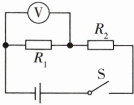 5 [2024贵州中考]如图所示电路,电源电压$U = 3$ V保持不变,定值电阻$R_{1} = 5$ Ω,闭合开关S,电压表示数为2 V。求: