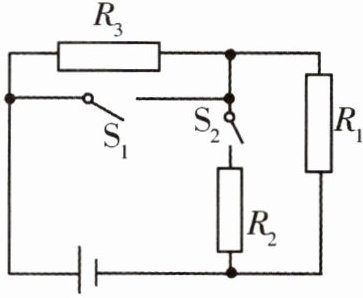 7 如图所示的电路中,$R_{1} = 6$ Ω,$R_{2} = 10$ Ω,$R_{3} = 4$ Ω,电源电压为6 V并保持不变。