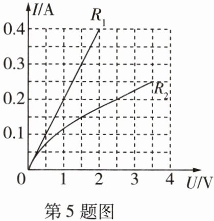 5 电阻$R_{1}与R_{2}的I - U$图像如图所示。当$R_{2}$两端的电压为1.5 V时,$R_{2}$的阻值是