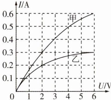 2 额定电压均为6 V的甲、乙两灯的I-U图像如图所示。则(