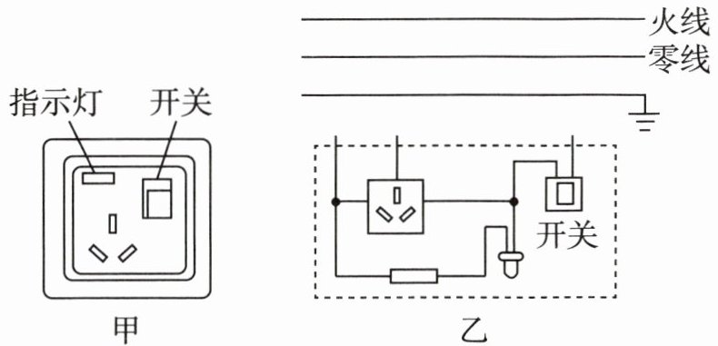 [变式2][2024广东中考]图甲为某款三孔插座。在符合安全用电原则下,请在图乙中用笔画线代替导线将该插座接入家庭电路中。