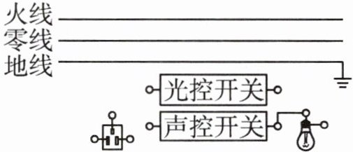 4 如图所示,请将图中的“声控开关”“光控开关”和灯泡用笔画线代替导线完成楼道灯自动控制电路的连接,要求在光线较暗且有声音时才亮;安装一个不受开关控制的三孔插座。