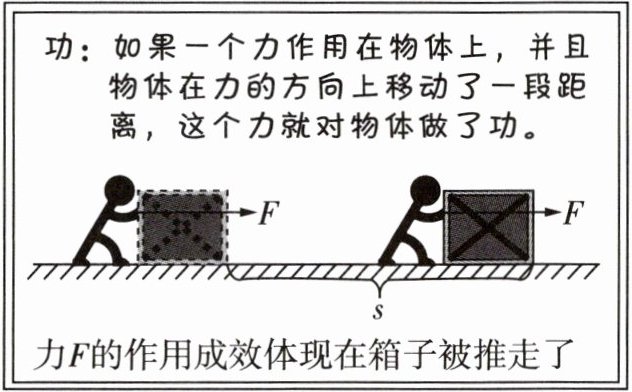 本题考察的是对功的定义及其计算的理解。在物理学中,功等于力与物体在力的方向上移动的距离的乘积。即$W = Fs$,其中$W$代表功,$F$代表力,$s$代表在力的方向上移动的距离。