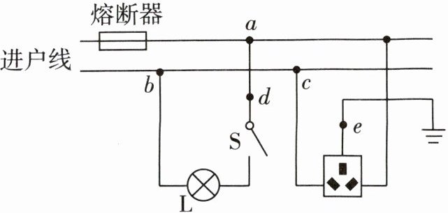 B.若e点所在导线断路,三孔插座仍可安全使用