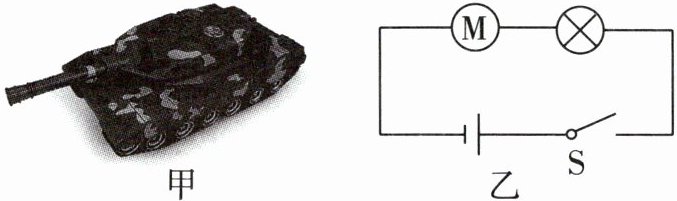 6 [2024临沂中考]图甲是一款能自动变形、万向行走的坦克玩具,其简化电路如图乙所示。该玩具的电源电压为4.5V,闭合开关后,“0.5V 0.2W”的指示灯正常发光,线圈电阻为0.5Ω的电动机正常工作,则(