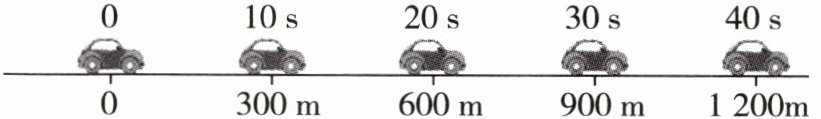 7 [2025 东台期中]电动汽车因节能、环保等优点深受广大家庭的喜爱。小昊的爸爸驾驶电动汽车在平直的高速公路上行驶,图为交管部门用相机每隔 10 s 曝光一次的车辆照片。已知该电动汽车和小昊爸爸的总质量为 $ 1.6 × 10^{3} $ kg,行驶中汽车受到的阻力为车重的 $ \frac{1}{20} $。求:(g 取 10 N/kg)