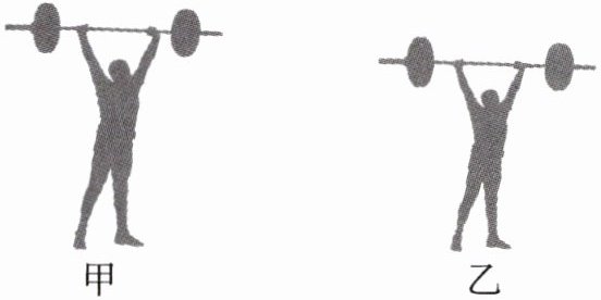 C 本题的考点是在实际应用中比较功率的大小。由题知两人举起杠铃的重力相同,因为甲比乙高,所以举起的高度$h_{甲}>h_{乙}$,因为举起杠铃做的功$W=Gh$,所以举起杠铃做的功$W_{甲}>W_{乙}$;因为$P=\frac {W}{t}$,两人举起杠铃用的时间相同,所以做功功率$P_{甲}>P_{乙}$。故选C。