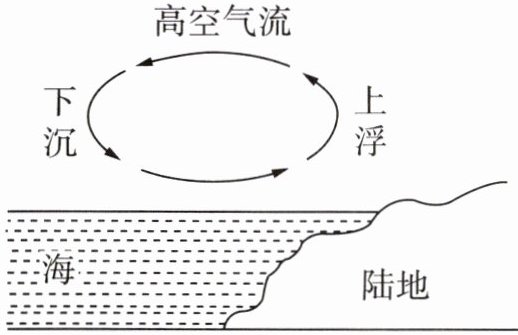 A 海水的比热容比陆地(泥土、砂石)的比热容大,白天,在太阳照射下陆地和海水吸收相同的热量,海水温度上升少,陆地温度上升多,热空气上升,海面冷空气就会来补充,于是冷空气沿海面吹向陆地,形成海风。题图近地面风向从海洋吹向陆地,是海风,且陆地近地面为上升气流,说明题图为白天形成的海风,故A符合题意,BCD不符合题意。