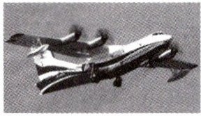 5 如图所示是我国自行设计研制的AG600全状态新构型灭火飞机。若该飞机以270km/h的速度匀速直线航行20min,消耗航空燃油1.35t,飞机发动机的功率为$2.25×10^7W。$(航空燃油的热值为$4×10^7J/kg)$