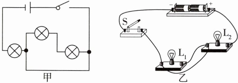 1 [2024来宾期中]如图所示,根据图甲中电路图,用笔画线代替导线将图乙中实物连接起来。