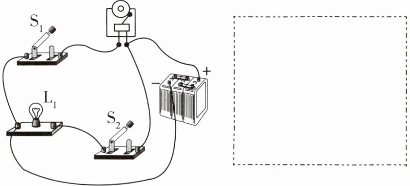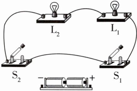 5 要求只添加一根导线,使灯$L_{1}和L_{2}$并联,开关S只控制灯$L_{1}$。