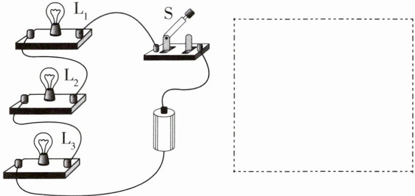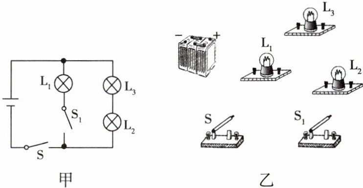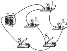 [解析] 采用电流流向法,电流从电源正极出发,依次通过灯泡L₁、开关S₁、开关S回到电源的负极;再将灯泡L₂和L₃串联起来,并联在灯泡L₁和开关S₁的两端即可。