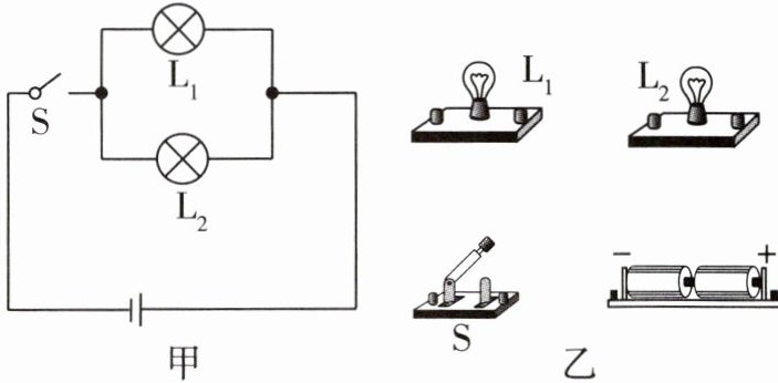 2 请按照如图甲所示的电路图将图乙中的实物元件连接起来。(导线不许交叉)
