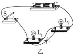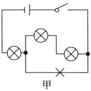 (2)如图乙中,有一根导线接错而使灯泡被短接,请把这根导线找出来,在上面打上“×”。