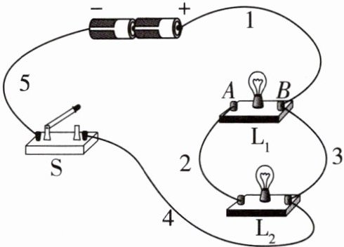 (填数字)即可;为使$L_{1}$、$L_{2}$并联,需将导线4的右端改接到接线柱A