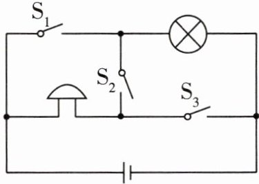;若只闭合开关$S_{2}$、$S_{3}$,则电铃