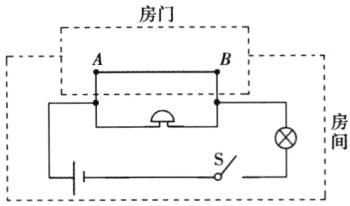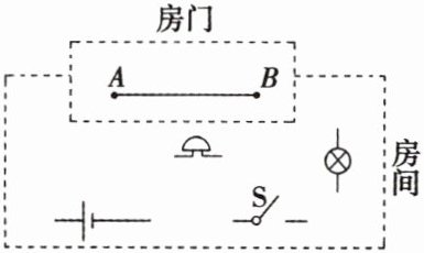11 [2023自贡中考改编]用图中提供的材料,设计一个自动防盗报警电路。要求:房间房门打开时,细导线AB被扯断,电铃发声自动报警。(用笔画线代替导线连接即可)