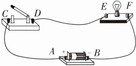 6 [2025南京期中]如图所示,闭合开关,发现灯泡不发光,电路中只有一处故障,可能是:(1)电池与电池盒接触不良;(2)开关刀片与触点接触不良;(3)灯泡灯丝断了;(4)导线DE内部断路。在闭合开关且不拆开导线的情况下,用完好的电压表正确操作进行检测,发现CD和EF间电压为零。据此可以判断故障是(