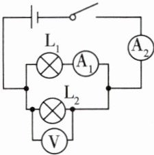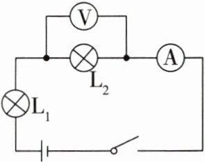 1 如图所示,电源电压为6V,灯泡$L_1$和$L_2$串联在电路中,闭合开关后,当$L_2$发生断路时,电流表的示数为