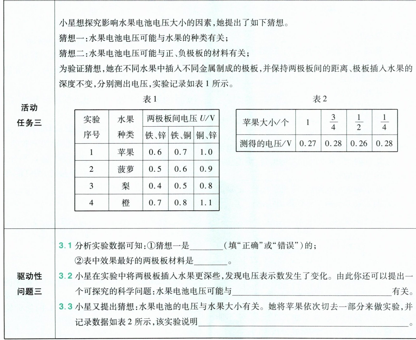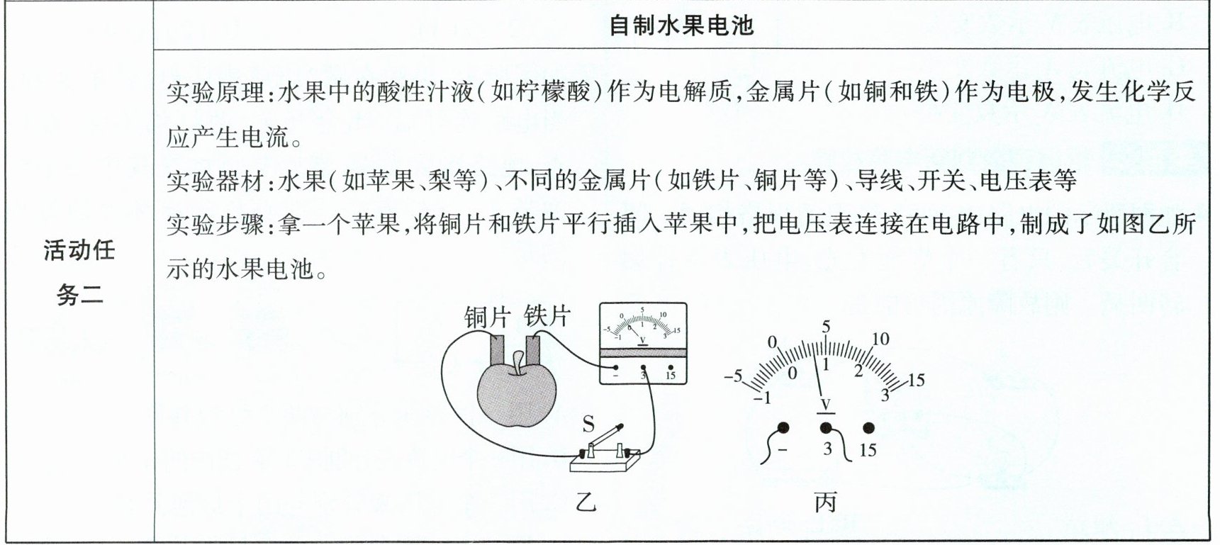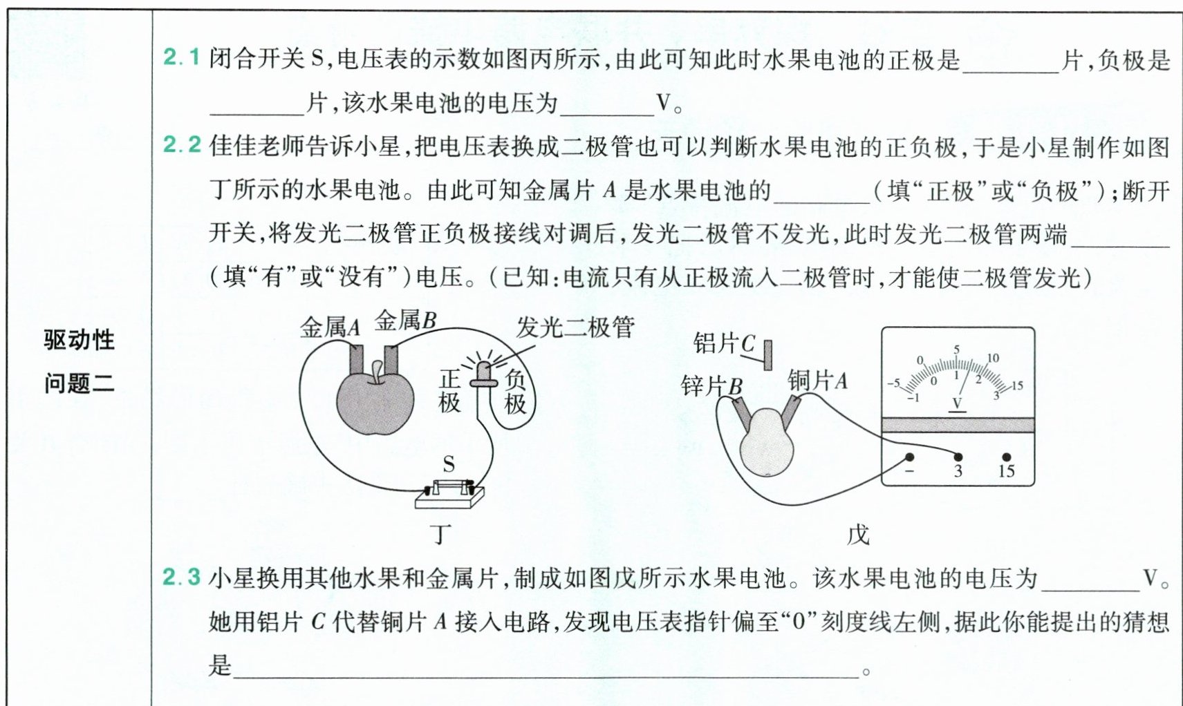 2.3【答案】1.5 水果电池的正负极和金属电极的材料有关