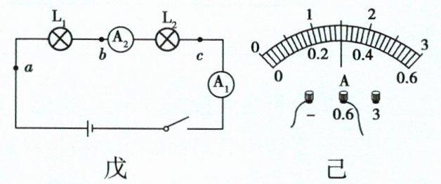 (6)小红在做“探究串联电路的电流特点”的实验,电路图如图戊所示。