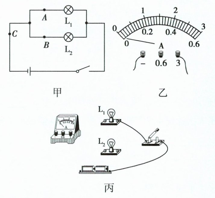 (2)小张要测量通过$L_2$的电流,请你在图丙中将实物电路连接完整。