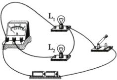 ①当开关闭合后,她发现两灯泡都不亮,为了找到故障原因,她用一根导线来检查。当导线与a、b两点连接时,灯泡$L_1$不亮、$L_2$亮;当导线与b、c两点连接时,两灯泡都不亮。由此推测故障是______。