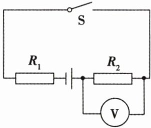 5 如图所示,电源电压保持不变, $ R_1 = 7 \Omega $, $ R_2 = 8 \Omega $,开关 $ S $ 闭合后,电压表的示数为 4 V,求: