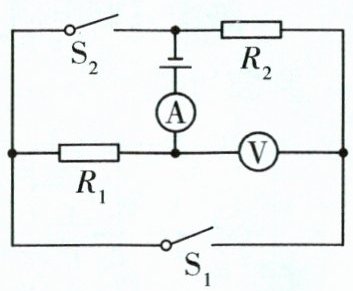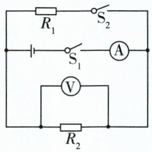 6 [2025北京延庆区期中]如图所示的电路中,电源电压保持不变,$R_{1}和R_{2}$为定值电阻。先闭合开关$S_{1}$,再闭合开关$S_{2}$后,电流表和电压表的示数变化的情况是(
