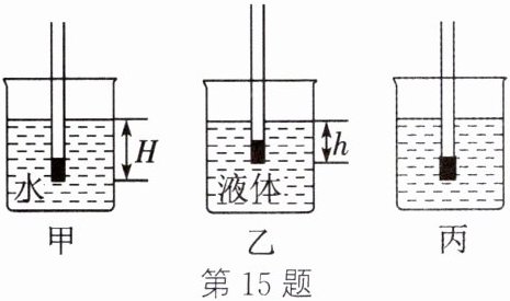 $g/cm^{3}$。(2) 吸管漂浮在其他液体中时(图乙),液面下方的深度$h=$