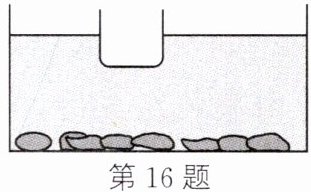 16. (杭州中考)小金把家里景观水池底部的鹅卵石取出清洗。他先将一个重为10N的空桶漂浮在水面上,然后将池底的鹅卵石捞出放置在桶内,桶仍漂浮在水面。(不考虑捞出过程中带出的水,$ρ_{水}= 1.0×10^{3}kg/m^{3}$,g取10N/kg)