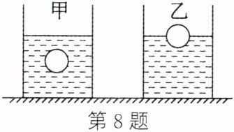 8. 水平放置的两个相同容器,分别装有甲、乙两种液体,将两个相同的实心球分别放入甲、乙液体中,稳定时两实心球的状态如图所示,且液面高度相同,则 (