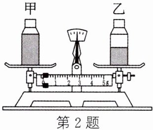 2. 两个规格相同的瓶子分别盛有不同的液体,然后分别放在已经调平的天平两端的托盘上,天平恰好能再次平衡,如图所示。则 (