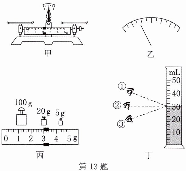 $g$。(3)将烧杯中的部分液体倒入量筒,图丁中读数视线正确的是