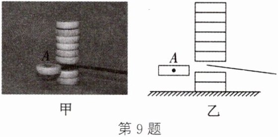 9. (淄博中考)如图甲所示,一摞棋子中的一颗棋子A被用力打出。请在图乙中画出棋子A受力的示意图(忽略空气阻力)。