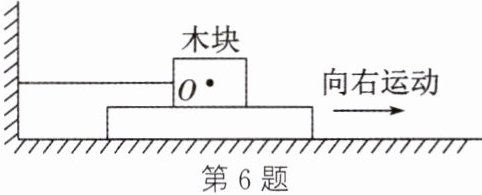 6. 如图所示,将木块与长木板叠放在水平地面上,用绳子将木块与竖直墙壁相连,绳子处于伸直状态。水平向右拉动长木板,请画出长木板对木块作用力的示意图(以O点为力的作用点)。