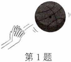 1. 请在图中画出被投出去的篮球受到的力的示意图(不计空气阻力)。