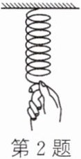 2. 如图所示,用手向下拉弹簧,请画出弹簧对手产生的弹力F的示意图。