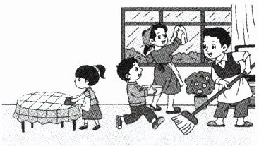 周末,小红一家在打扫卫生,