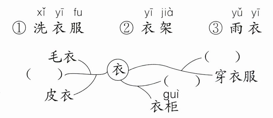 四、请选择恰当的韵母将出行物品清单补充完整,注意加声调哟!(4分)