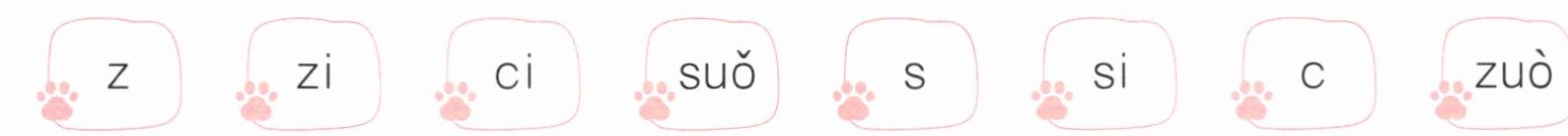 声母:z s c 三拼音节:suǒ zuò 整体认读音节:zi ci si