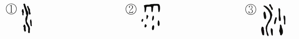 2. (语文要素)“水”原来是指河水流动的样子,根据这个意思猜一猜,古人写的“水”字可能是(填序号)(3分) ( )