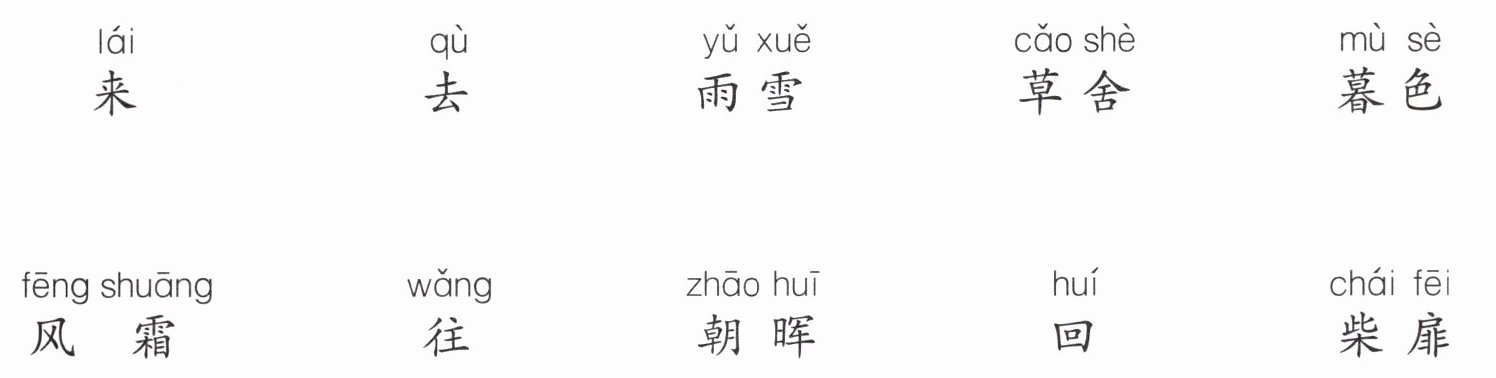 来 对 往 ,去 对 回 ,雨 雪 对 风 霜 。