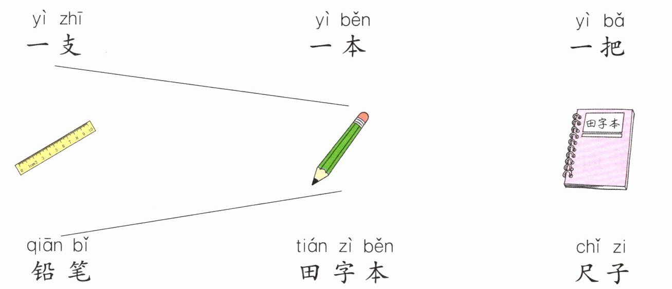 qiān bǐ chǐ zi tián zì běn děng dōu shì xué xí yòng pǐn