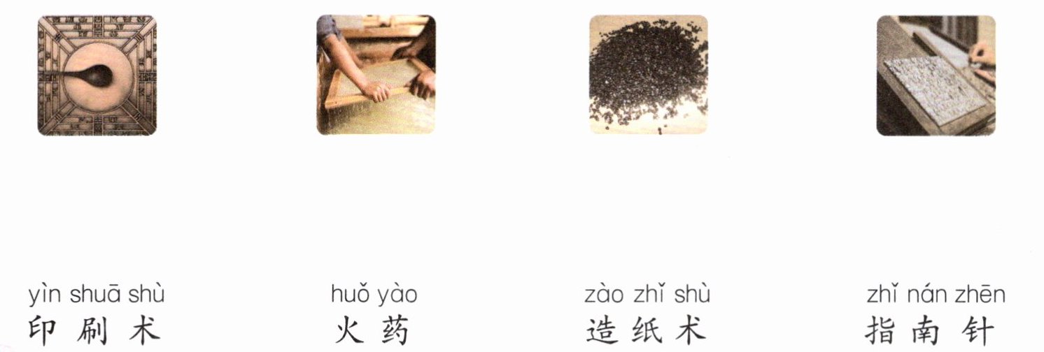 六、(中华文化)你认识下面我国古代的四大发明吗?连一连。