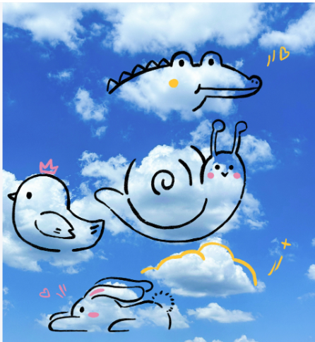 提示:想象一下,天上的白云还有什么样的形态,画下来即可。