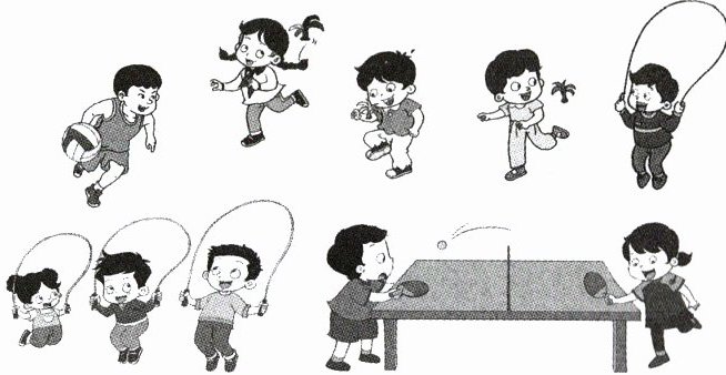 示例:下课了,小朋友们蹦蹦跳跳地到操场上玩耍。有的小朋友手握乒乓球拍,认真地打着乒乓球。有的小朋友弯着背,使劲儿地拍着球,手中的球一上一下,像在快乐地跳舞。还有的小朋友双手握着绳子,轻快地跳起绳来。更有趣的是,有的小朋友一脚弯曲,一脚高高抬起,灵活地踢着毽子,毽子就像一只彩色的小鸟飞来飞去。操场上到处都是小朋友们的欢笑声,大家都开心极了!