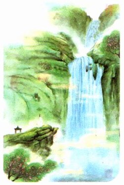 2. 假期,我们一家到庐山游玩。看见瀑布悬挂在山前,我想到了李白的“日照香炉生紫烟,遥看瀑布