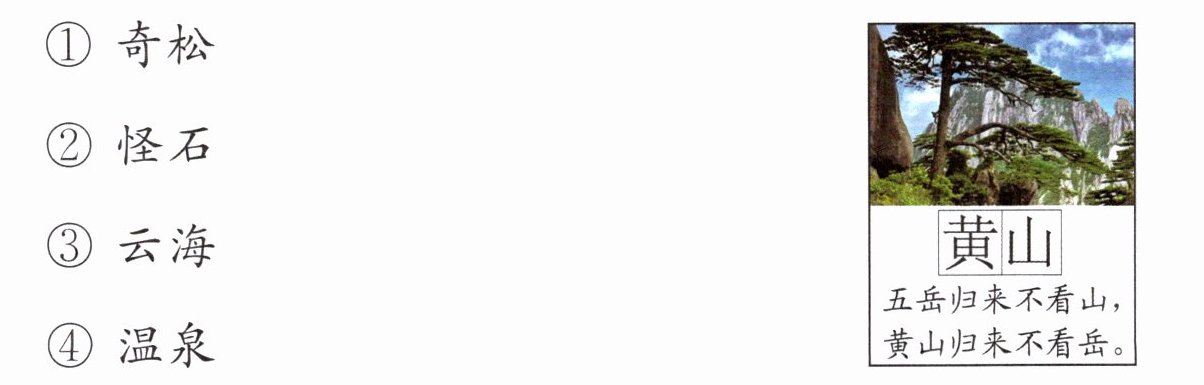 告别黄山 四、小语回忆旅程中看到的海报,请你解读海报内容。这张海报的主题是黄山“四绝”中的(填序号) (