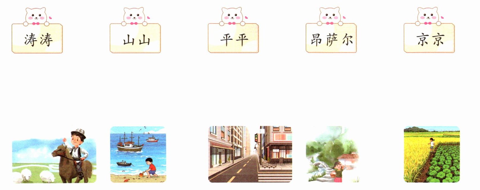 阅读之星 五、看看谁是阅读领航之星!小文正在阅读《画家乡》,请你帮助小文找到小朋友们的家乡吧!